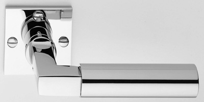 The shape of this handle highlights the cubist influence of the Art-Deco period. The light and elegant effect of the handle is obtained by the shifted segments. KU D 30 E... Pair of levers, complete with square lever roses and spindle.
