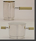 Art-Deco Champagne BucketThe original of this silver champagne cooler comes from Germany, circa 1930. The designer is unknown. The sweeping, elegant form is nostalgic of the atmosphere of the excessive, riotous parties, held in the late twenties and early thirties.
