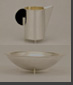 Obviously under the artistic influence of Marianne Brandt, but nevertheless adding his own design, Hans Przyrembel created this cream/sugar set in 1925. The set consists of a creamer and a sugar bowl.