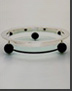 Josef Albers created this fruit bowl in 1924 with two slightly different variations; the difference being the size of the wooden balls, which serve at the same time as feet and as holders of the glass plate. The one with the larger feet is produced in silver, in an edition limited to 100 pcs. The original is in the collection of The Museum of Modern Art, New York.