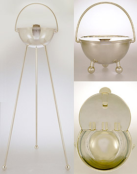 Thanks to a counterweight on the inside, the lid of this jug opens automatically, when pouring the wine. Sylvia Stave designed several silver objects for the "Guldsmedsaktiebolaget" in Stockholm. Almost nothing is known about her personally, although she was one of the leading designers in Scandinavia during the 1920s, her design work being equal to the outstanding quality of Marianne Brandt in Germany.